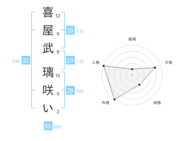 喜屋武 璃咲いさんの天格は29画の4点!