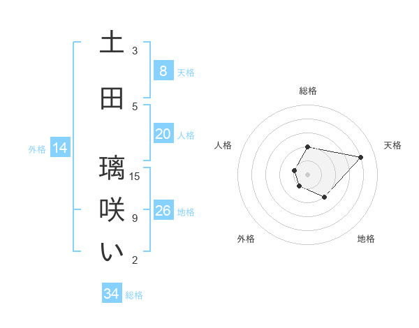 土田 璃咲いさんを姓名の画数から五運を鑑定