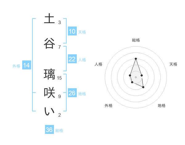 土谷 璃咲いさんを姓名の画数から五運を鑑定