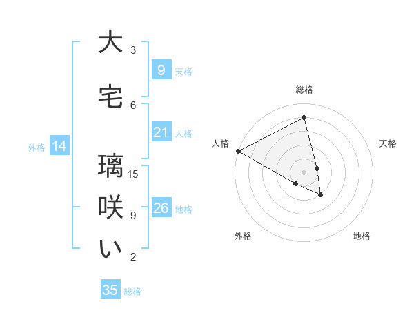大宅 璃咲いさんを姓名の画数から五運を鑑定