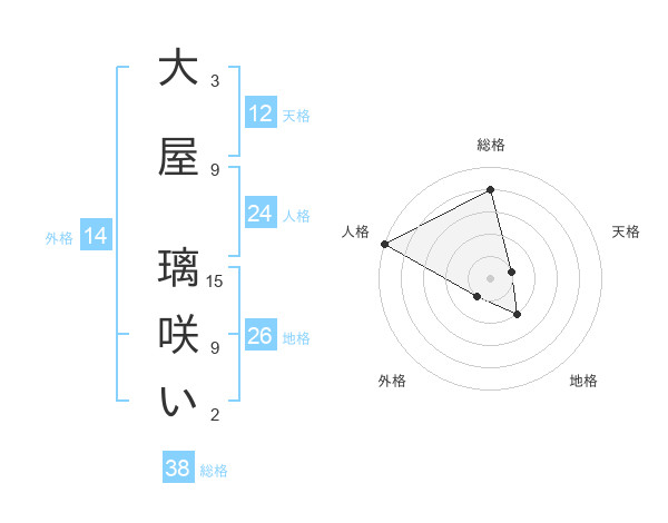 大屋 璃咲いさんの総格は38画の4点!