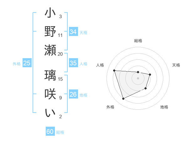 小野瀬 璃咲いさんの総格は60画の1点!
