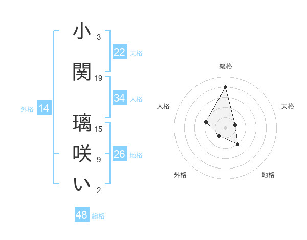 小関 璃咲いさんを姓名の画数から五運を鑑定