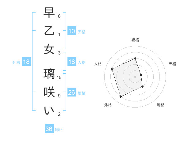 早乙女 璃咲いさんの地格は26画の2点!