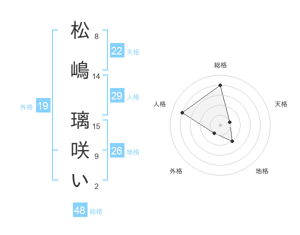 松嶋 璃咲いさんを姓名の画数から五運を鑑定