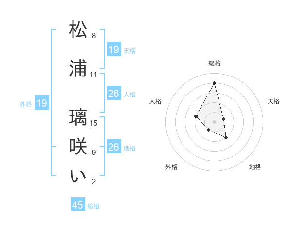 松浦 璃咲いさんを姓名の画数から五運を鑑定