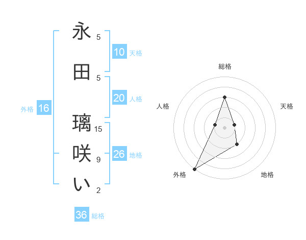 永田 璃咲いさんを姓名の画数から五運を鑑定