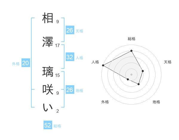 相澤 璃咲いさんを姓名の画数から五運を鑑定