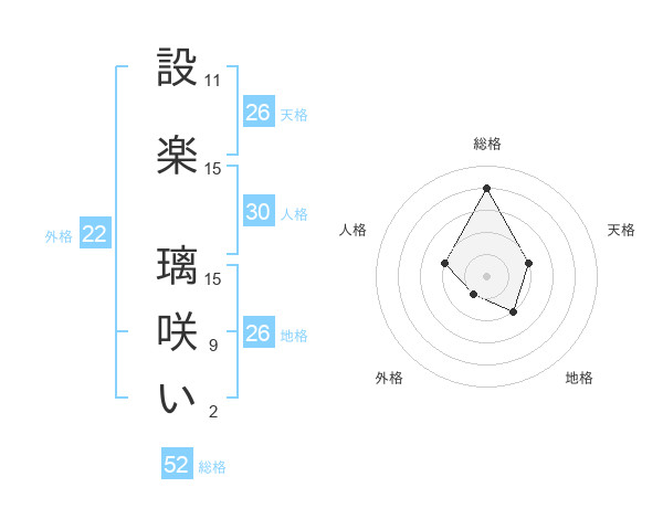 設楽 璃咲いさんを姓名の画数から五運を鑑定