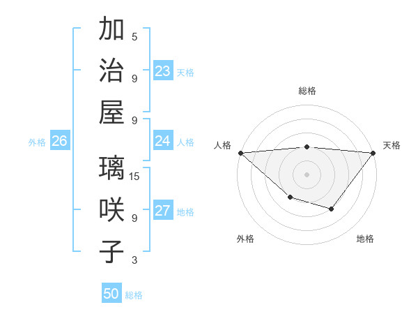 加治屋 璃咲子さんを姓名の画数から五運を鑑定