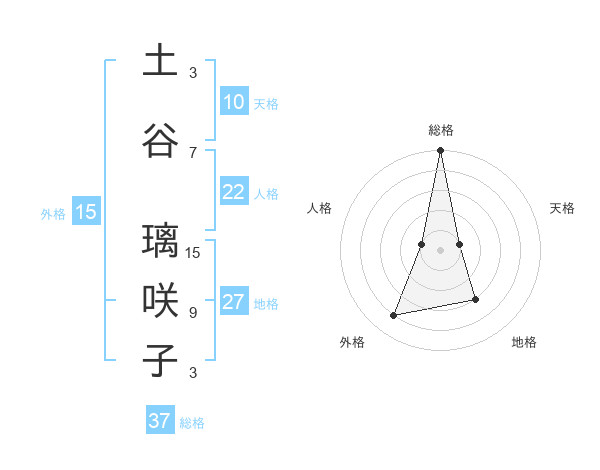 土谷 璃咲子さんの総格は37画の5点!