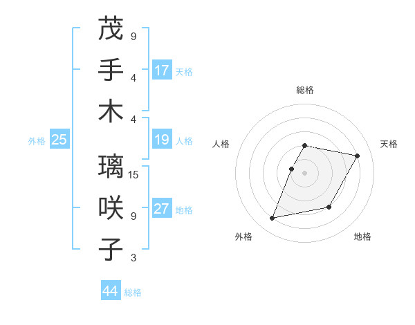 茂手木 璃咲子さんを姓名の画数から五運を鑑定