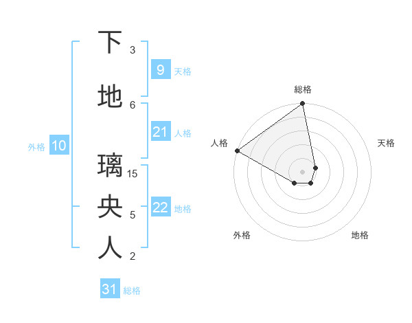 下地 璃央人さんを姓名の画数から五運を鑑定