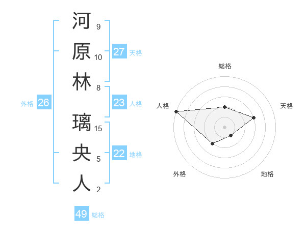 河原林 璃央人さんを姓名の画数から五運を鑑定