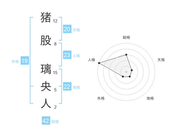 猪股 璃央人さんの総格は42画の3点!