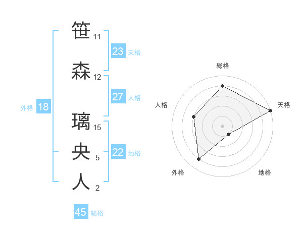 笹森 璃央人さんの天格は23画の5点!