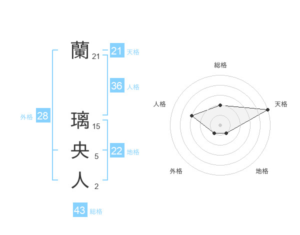 蘭 璃央人さんの天格は21画の5点!