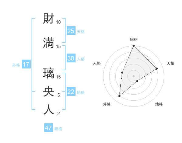 財満 璃央人さんを姓名の画数から五運を鑑定