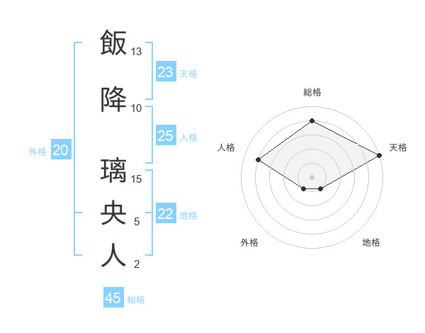 飯降 璃央人さんの天格は23画の5点!