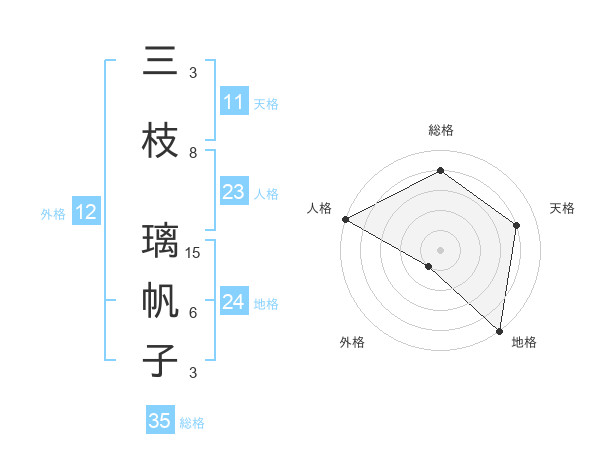 三枝 璃帆子さんを姓名の画数から五運を鑑定