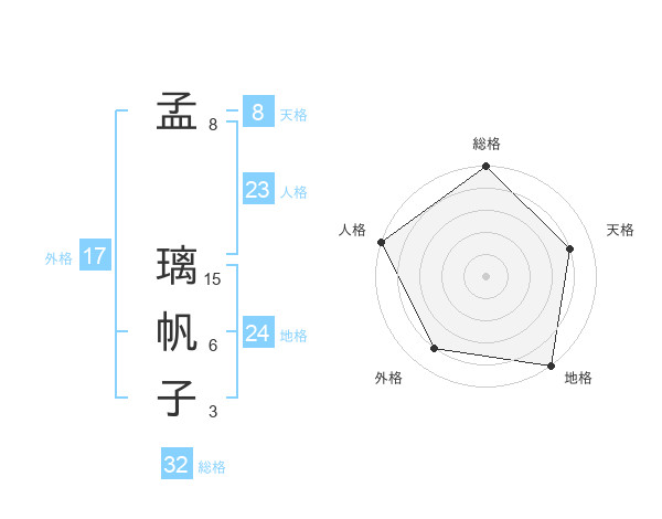 孟 璃帆子さんの総格は32画の5点!