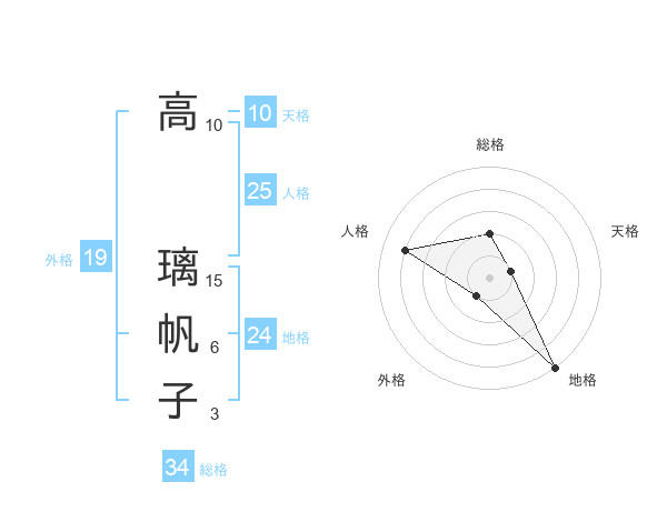 高 璃帆子さんを姓名の画数から五運を鑑定