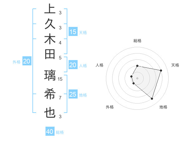 上久木田 璃希也さんを姓名の画数から五運を鑑定