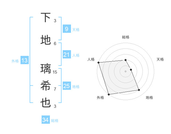 下地 璃希也さんを姓名の画数から五運を鑑定