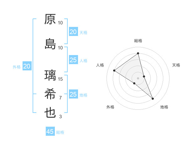 原島 璃希也さんを姓名の画数から五運を鑑定