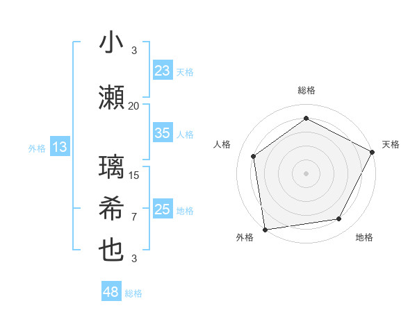 小瀬 璃希也さんを姓名の画数から五運を鑑定