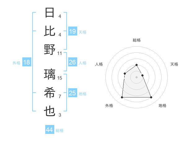 日比野 璃希也さんの総格は44画の2点!