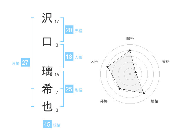 沢口 璃希也さんの総格は45画の4点!