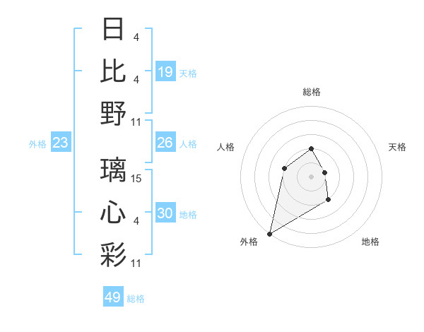 日比野 璃心彩さんを姓名の画数から五運を鑑定