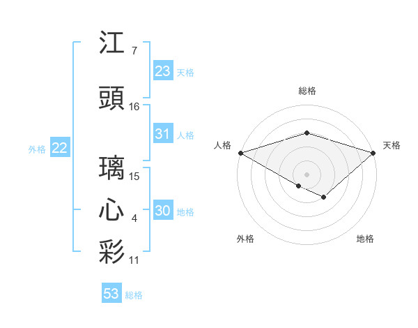 江頭 璃心彩さんを姓名の画数から五運を鑑定
