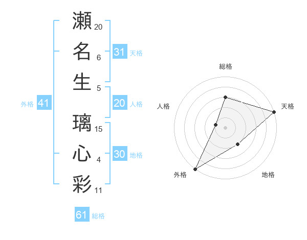 瀬名生 璃心彩さんを姓名の画数から五運を鑑定