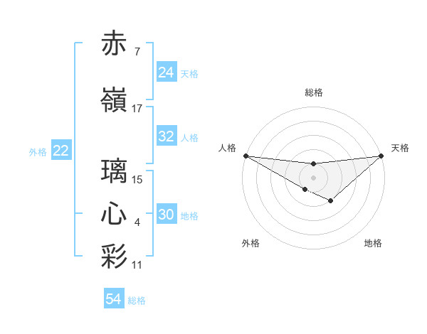 赤嶺 璃心彩さんを姓名の画数から五運を鑑定