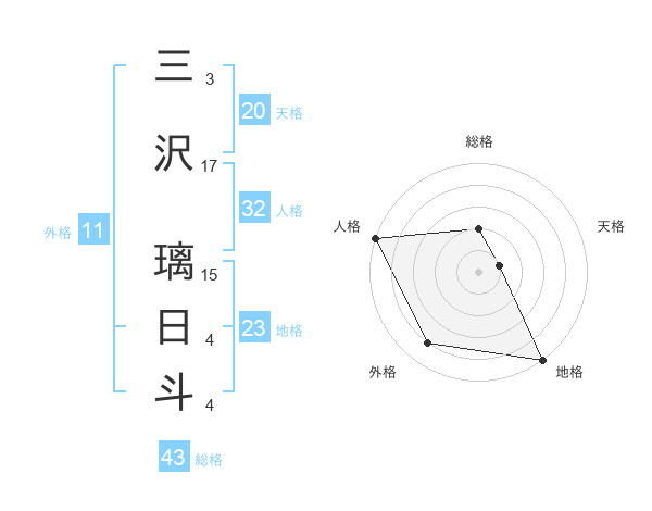 三沢 璃日斗さんを姓名の画数から五運を鑑定