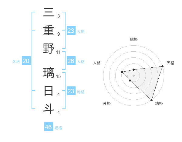 三重野 璃日斗さんを姓名の画数から五運を鑑定