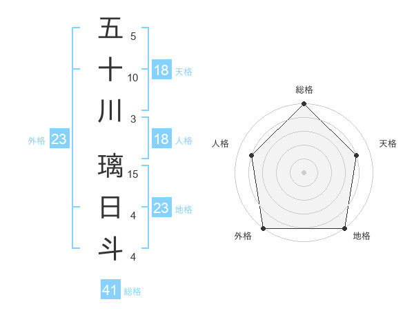 五十川 璃日斗さんの総格は41画の5点!