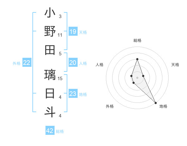 小野田 璃日斗さんの外格は22画の1点!