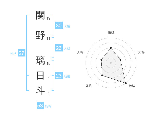 関野 璃日斗さんの総格は53画の3点!