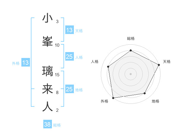 小峯 璃来人さんを姓名の画数から五運を鑑定