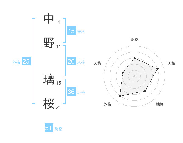 中野 璃桜さんを姓名の画数から五運を鑑定
