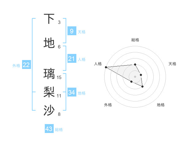 下地 璃梨沙さんを姓名の画数から五運を鑑定