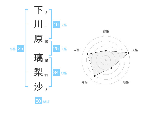 下川原 璃梨沙さんを姓名の画数から五運を鑑定