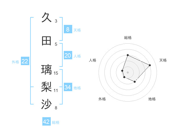 久田 璃梨沙さんを姓名の画数から五運を鑑定
