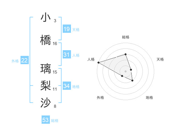 小橋 璃梨沙さんを姓名の画数から五運を鑑定