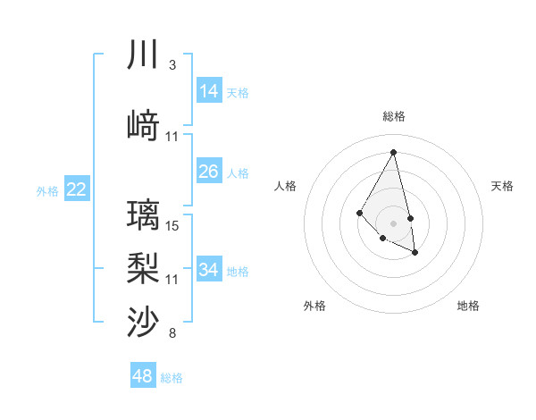川﨑 璃梨沙さんを姓名の画数から五運を鑑定