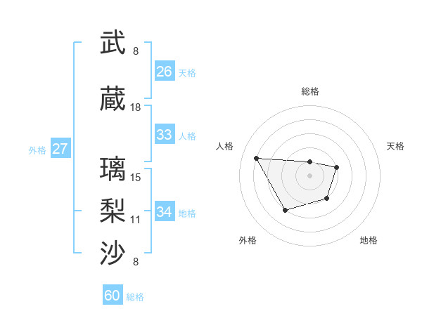 武蔵 璃梨沙さんを姓名の画数から五運を鑑定