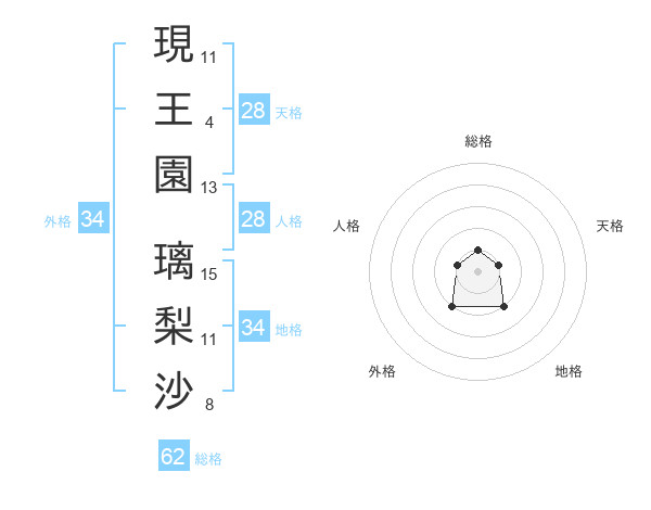 現王園 璃梨沙さんを姓名の画数から五運を鑑定